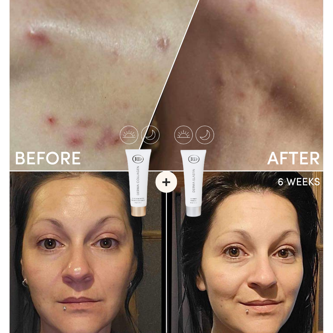 - Use DERMA COLLAGEN and DERMA ELASTIN overlay, morning and evening