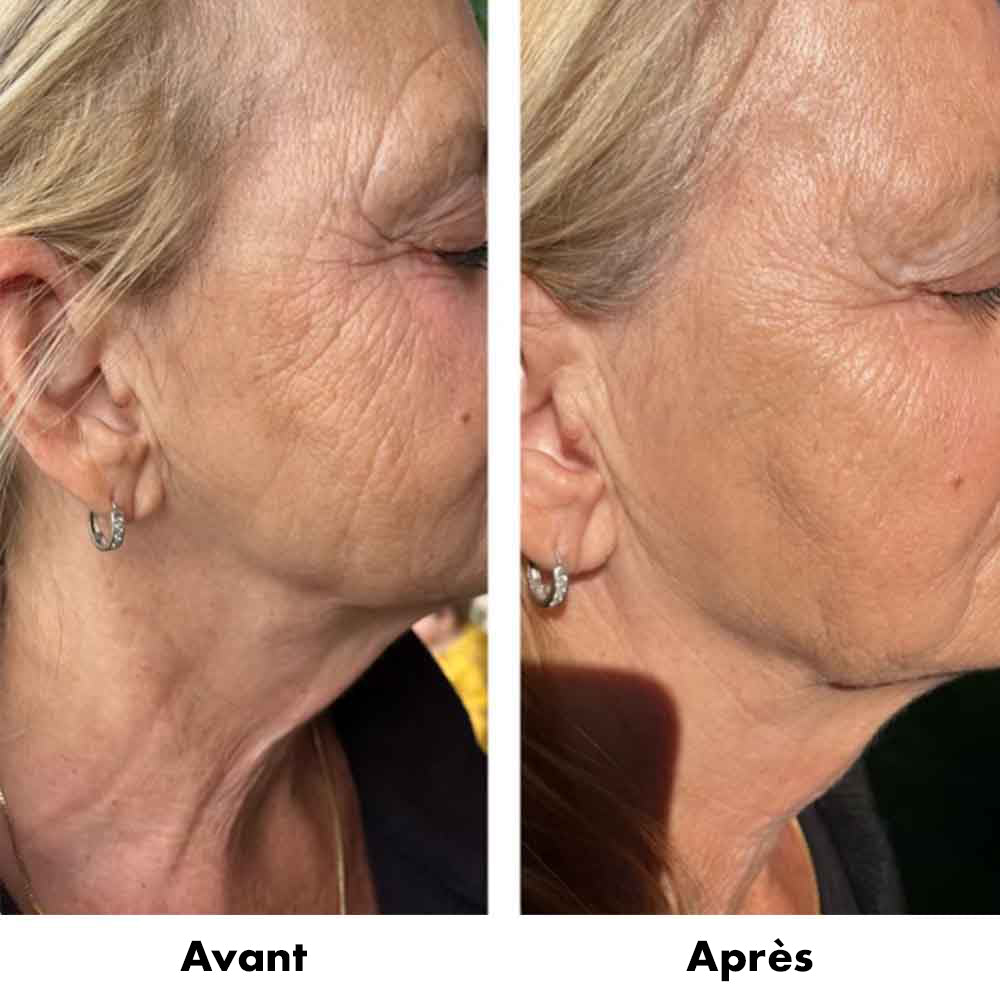 - Utilisation superposition Derma Collagen et du Derma Elastin matin et soir pendant