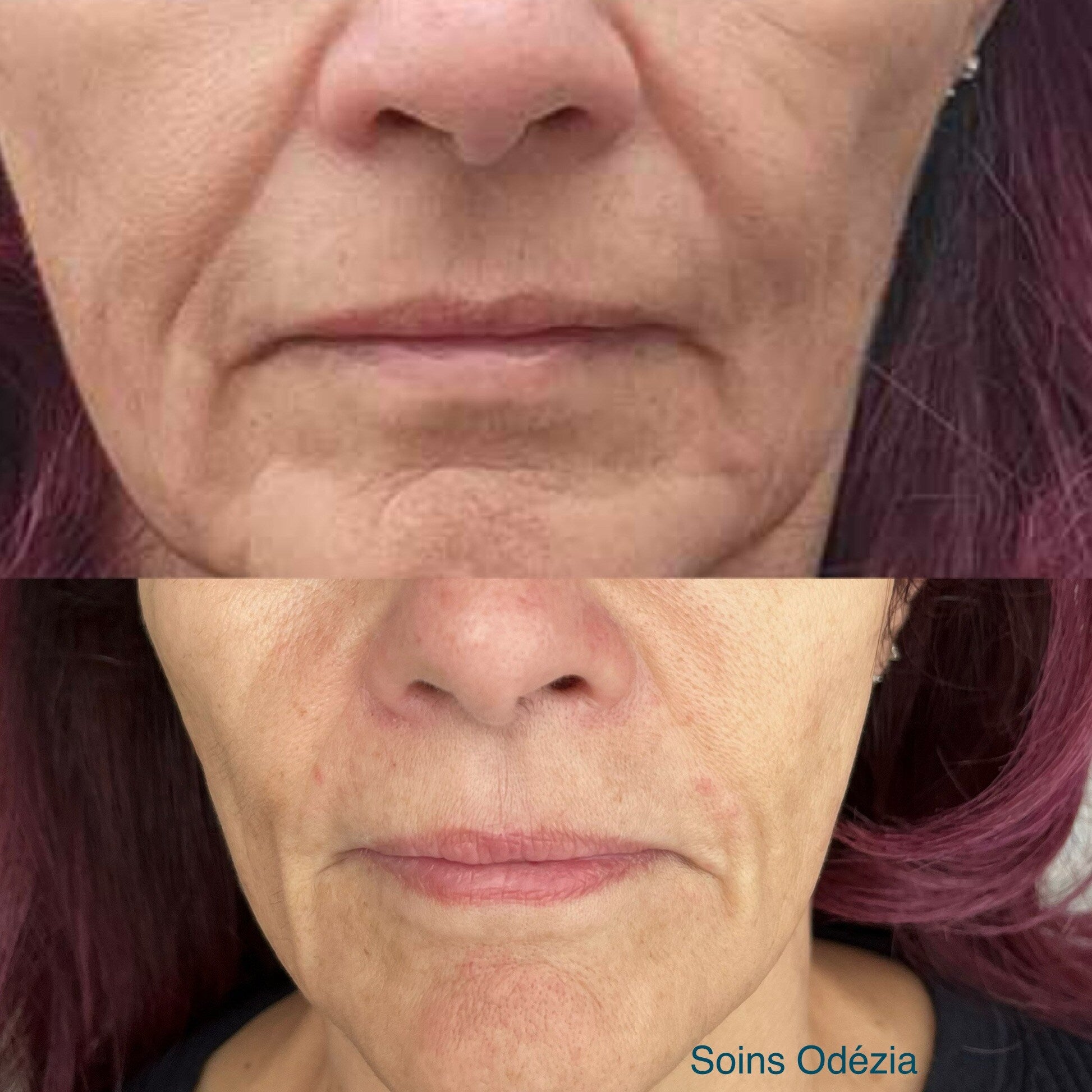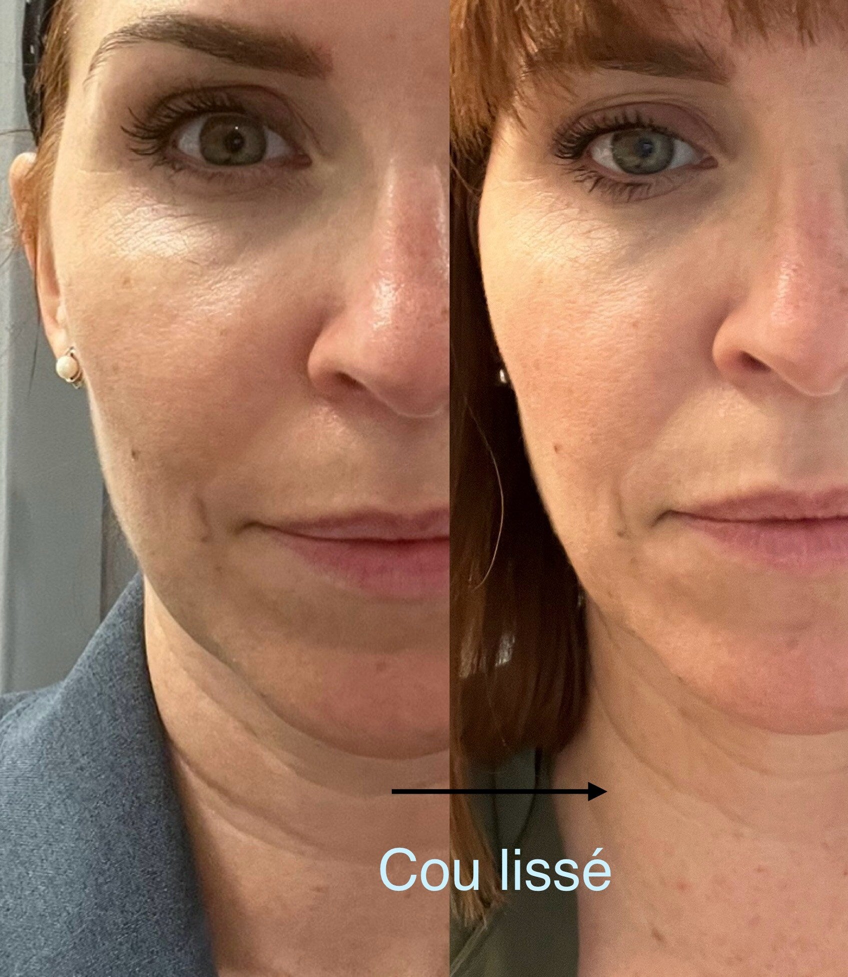 Application: Derma Collagen et Derma Elastin matin et soir pendant 2 mois.
